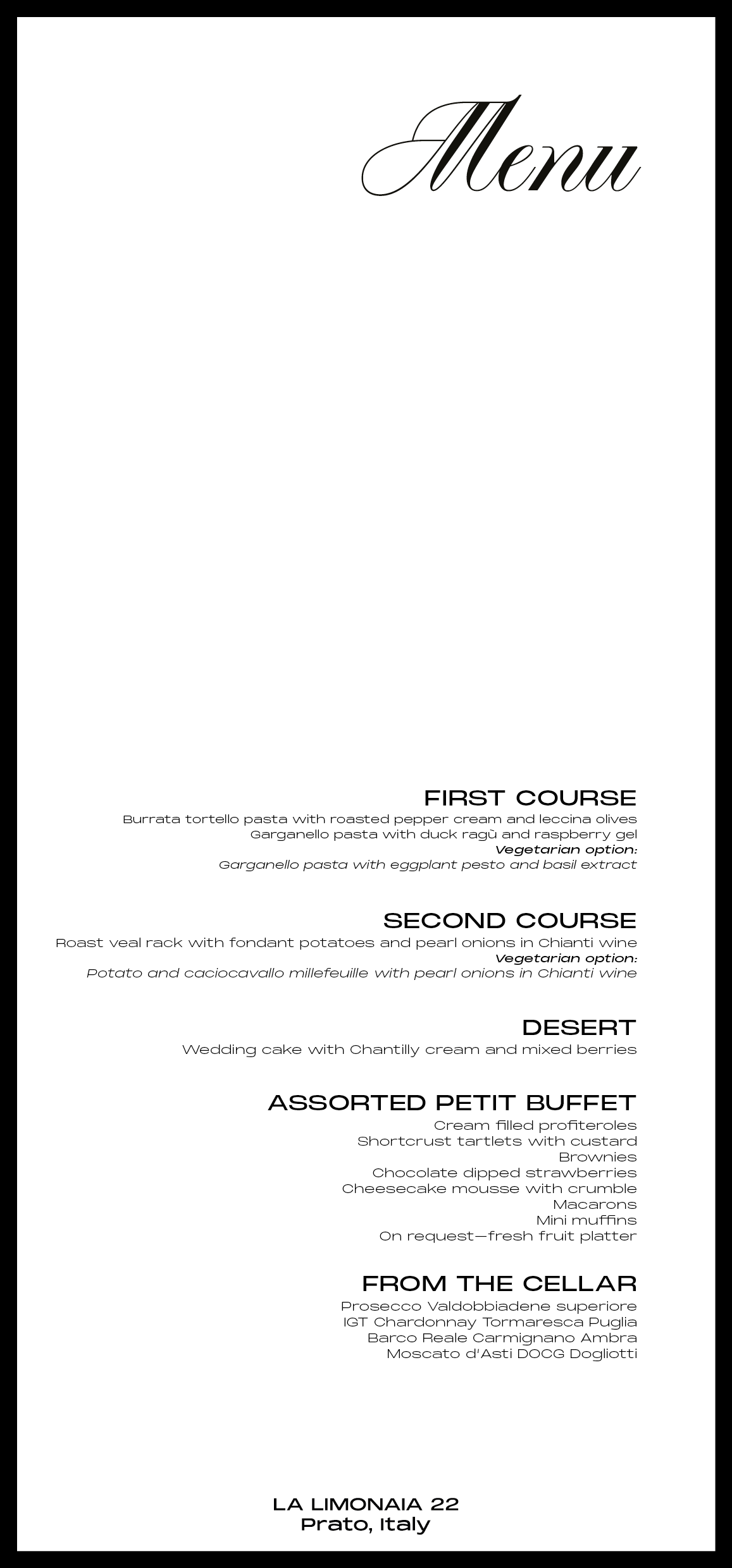 Join us on September 21st, 2025, to celebrate our wedding reception in Prato, on the outskirts of Florence, Italy.